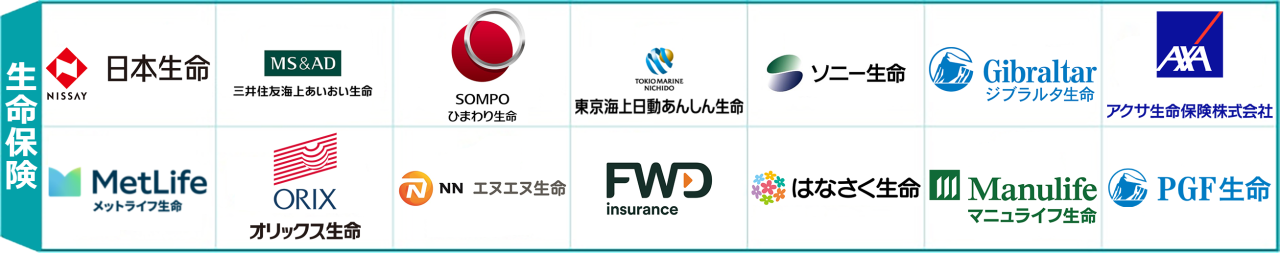 | 生命保険 | 日本生命保険相互会社、三井住友海上あいおい生命保険株式会社、SOMPOひまわり生命保険株式会社、 |